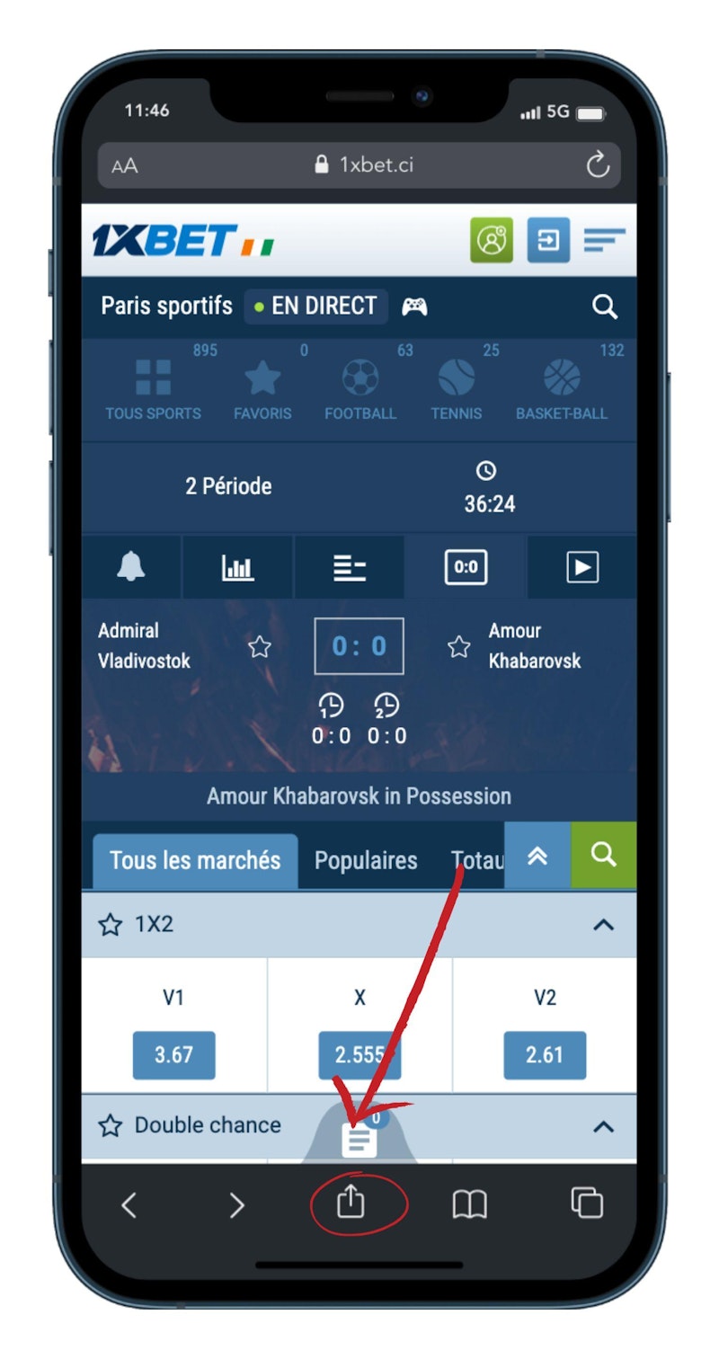 Sur iOS, l'application se limite aux iPad, donc vous ne pourrez pas installer l'appli 1xBet sur iPhone malheureusement, mais voici une solution très simple pour avoir accès à 1xbet comme sur une application.